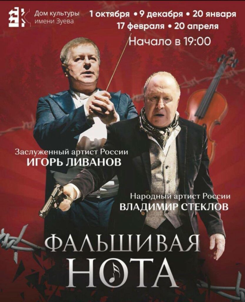 Сегодня мы идем в театр на спектакль «Фальшивая нота». Насладимся игрой знаменитых актеров Владимира Стеклова, Игоря Ливанова, Леонида Кулагина. «Всё действие — это дуэль характеров, где эмоции поднимаются не от громких слов, а из молчания и полутонов. Этот спектакль — не просто история встречи. Это испытание для зрителя: он побуждает останавливаться, прислушиваться к собственным мыслям […]